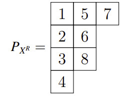和它产生的杨表 ,若 是 的翻转,那么 产生的杨表 即为 交换行列得到。例如,对于排列