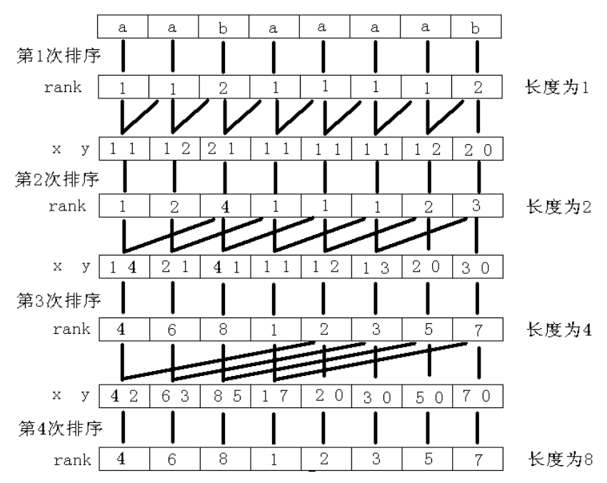 倍增排序示意图: