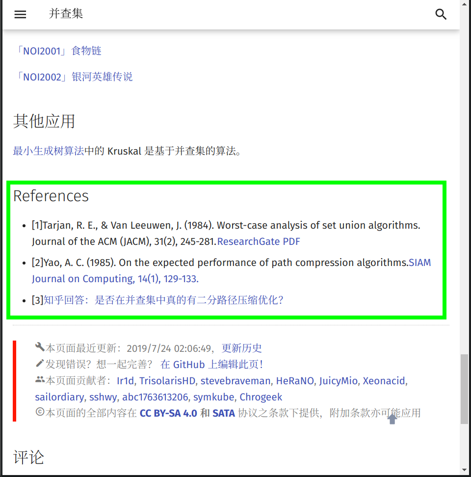 请确保您的文档中的引用链接的稳定性。不推荐 引用 自建 服务中的资源(如自建 OJ 里的题目)。建议在添加时同时将该外链存于互联网档案馆7,以防无法替代的链接失效。