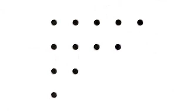 Ferrers 图:将分拆的每个部分用点组成的行表示。每行点的个数为这个部分的大小。
