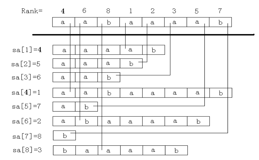 倍增排序示意图: